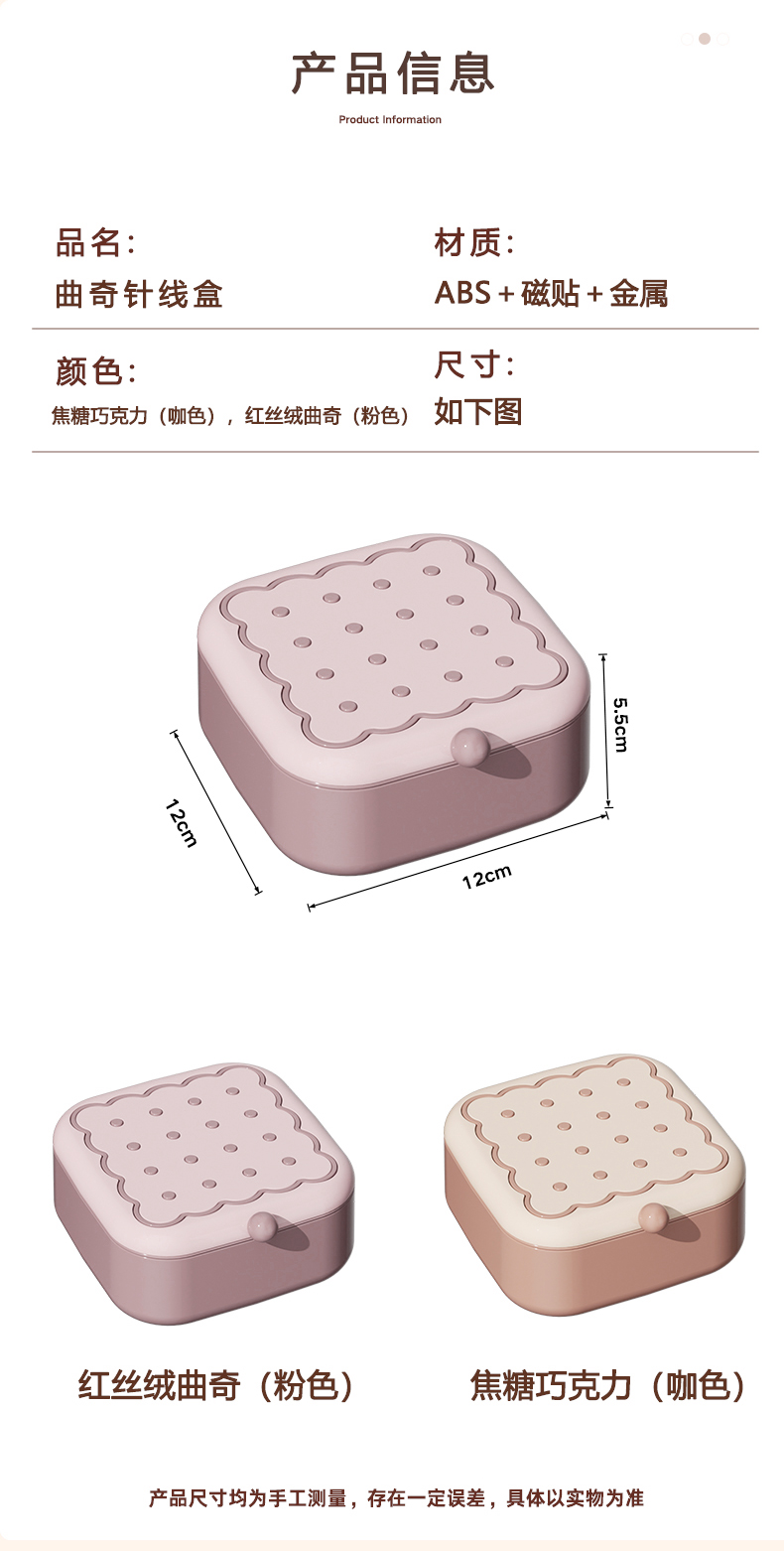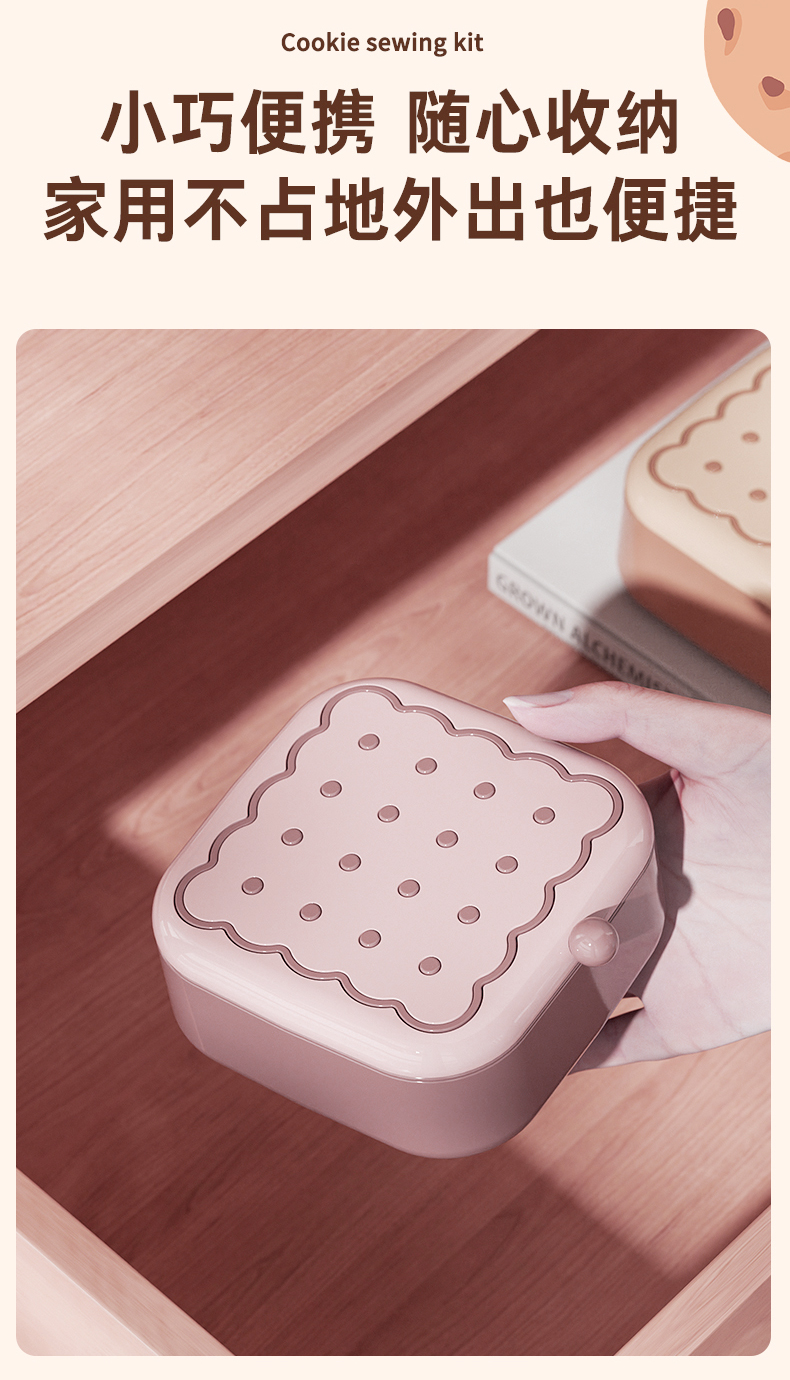 商品名称: 曲奇形针线盒 强磁吸附双层针线套装--粉色