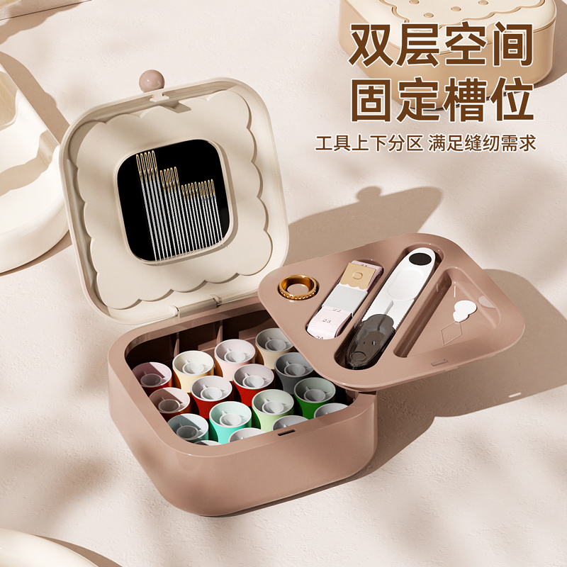 • 商品名称:曲奇形针线盒 强磁吸附双层针线套装--咖色