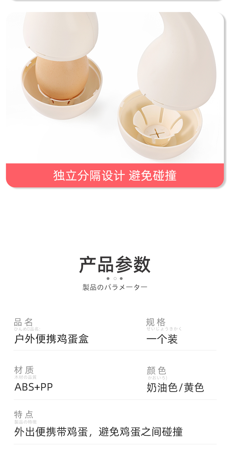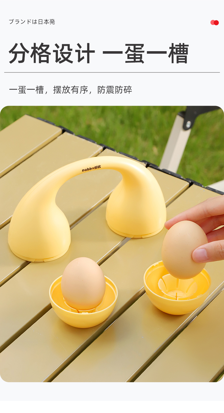 • 商品名称:提手设计双分格户外便携鸡蛋盒 防震鸡蛋收纳盒--黄色