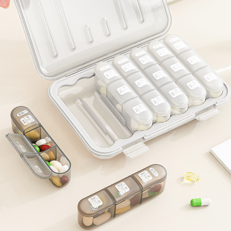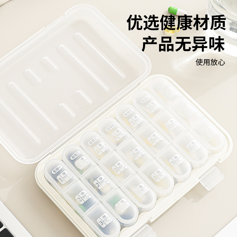 • 商品名称:7天便携式密封药盒 加大图文21小分格大容量药盒--透明白