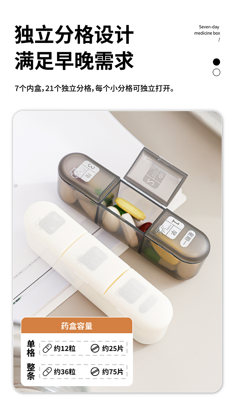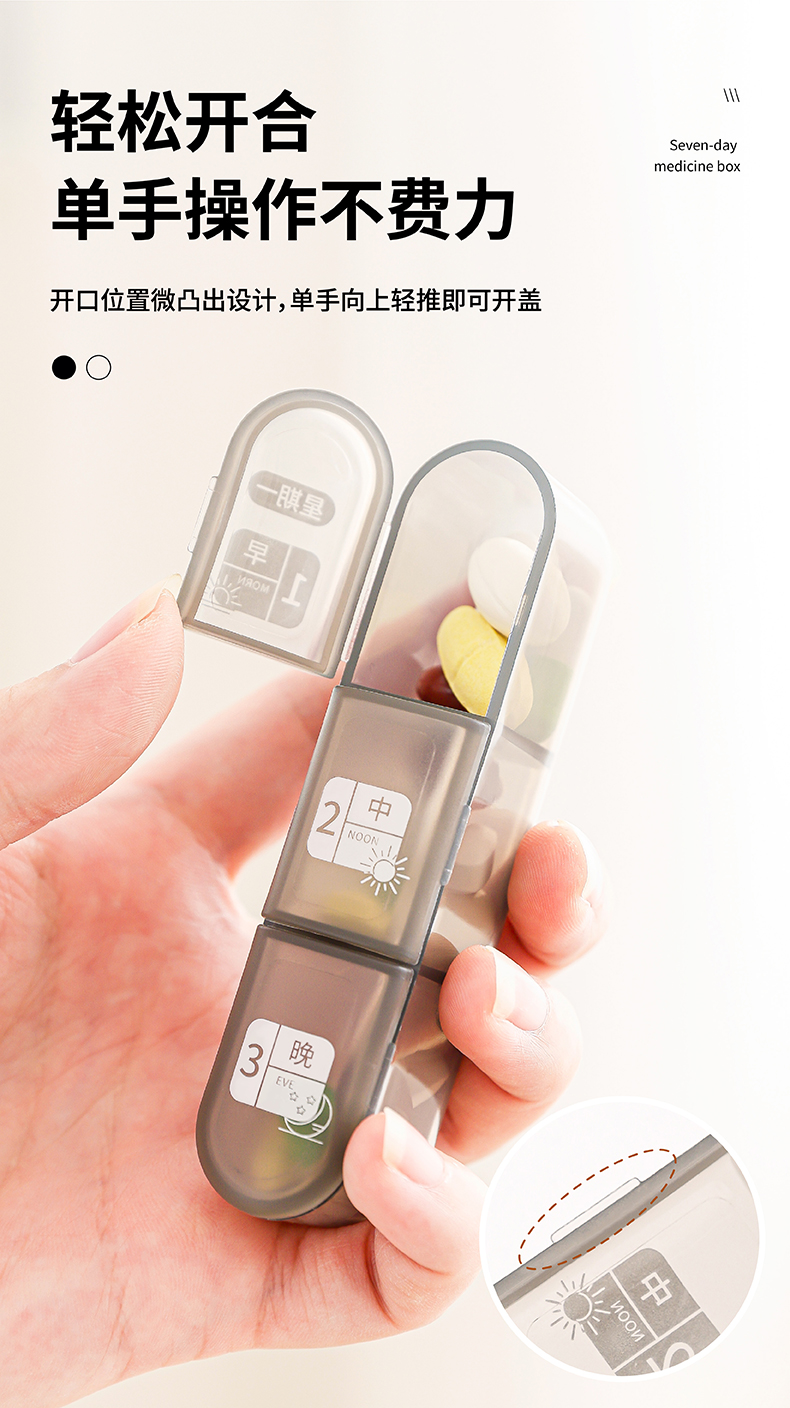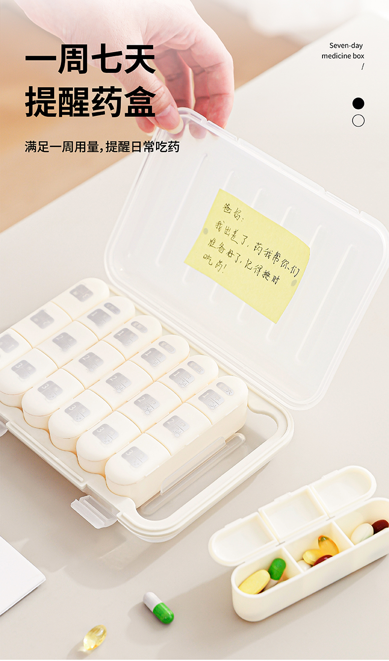 HQS-223794 7天便携式密封药盒 加大图文21小分格大容量药盒--奶白色 33 7.90