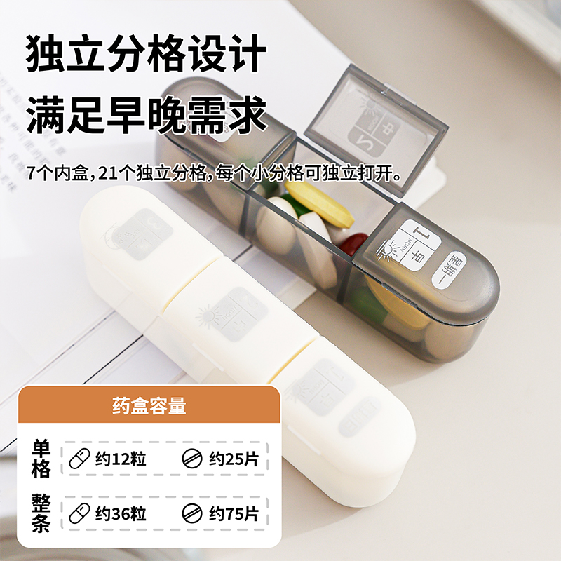HQS-223794 7天便携式密封药盒 加大图文21小分格大容量药盒--奶白色 33 7.90