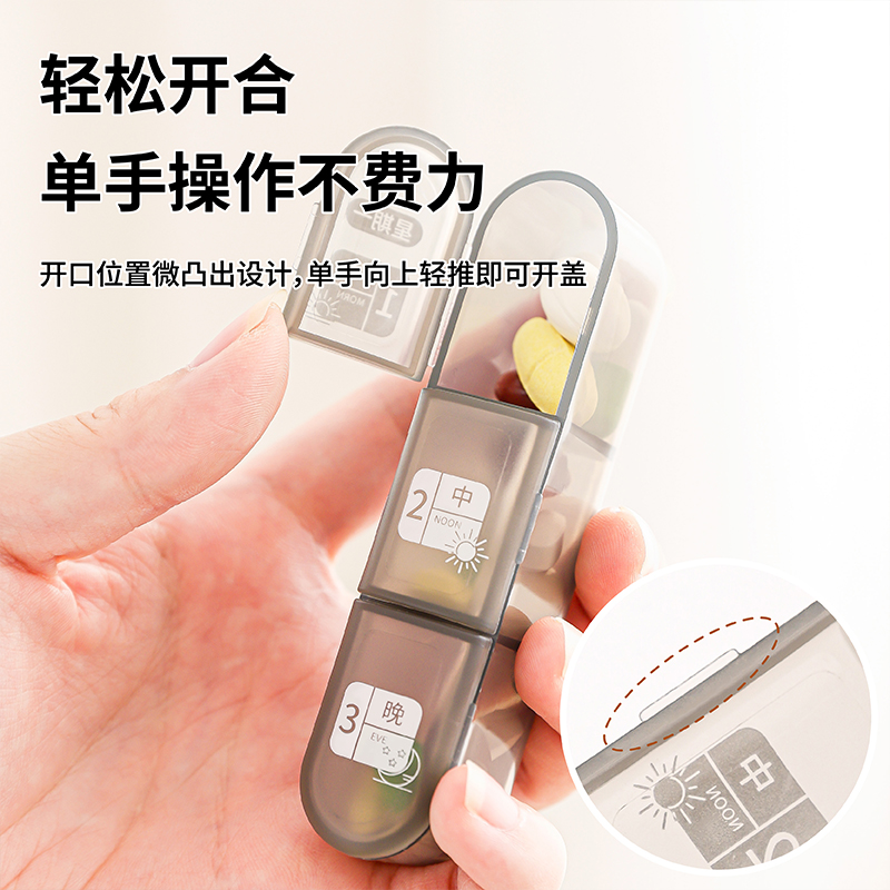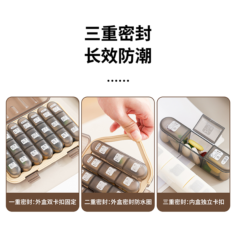• 商品名称:7天便携式密封药盒 加大图文21小分格大容量药盒--透明咖