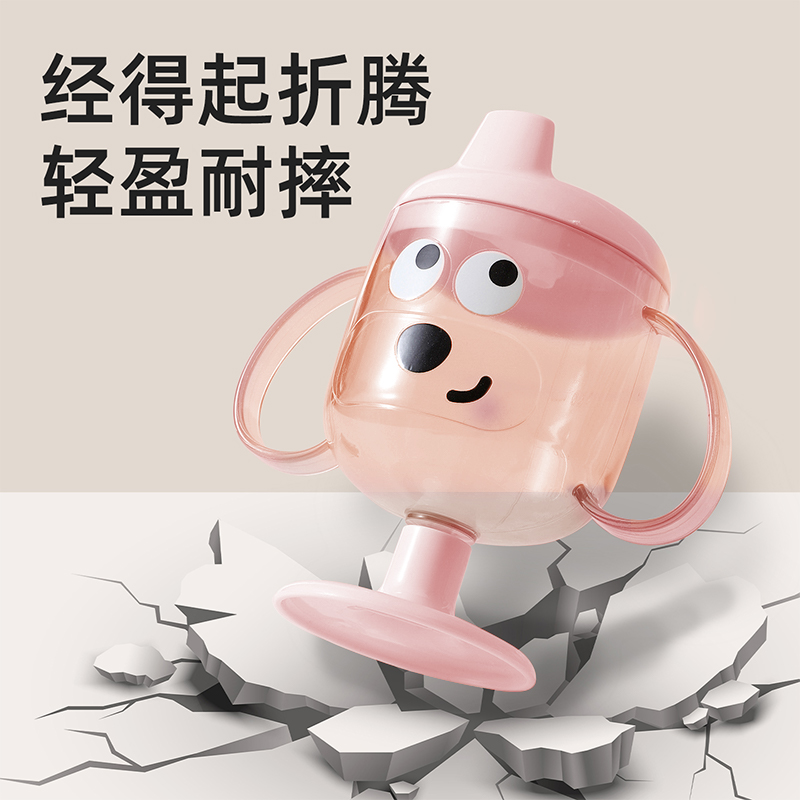 商品名称: 趣味儿童高脚杯 双把手密封防漏儿童婴儿水杯--粉色