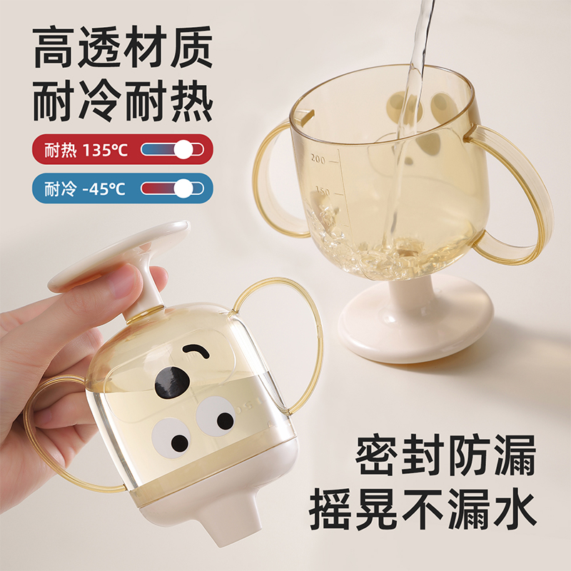 • 商品名称:趣味儿童高脚杯 双把手密封防漏儿童婴儿水杯--奶油色