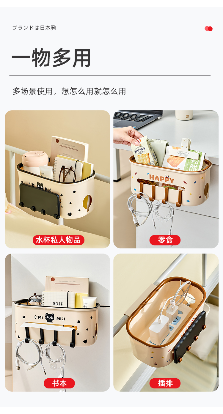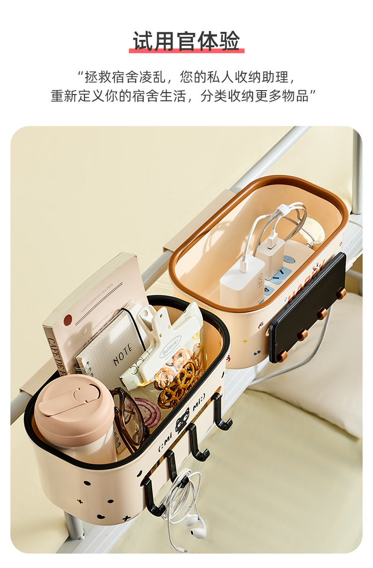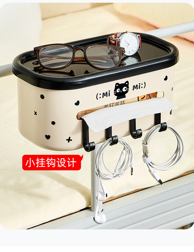 • 商品名称:宿舍床边挂篮 卡扣式床边纸巾盒置物架带挂钩--黑色