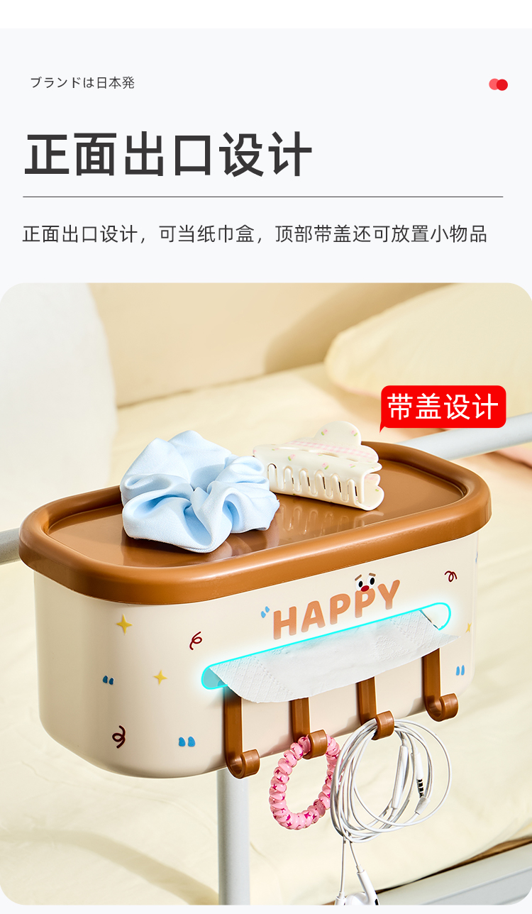 HQS-223802 宿舍床边挂篮 卡扣式床边纸巾盒置物架带挂钩--棕色 13 8.85