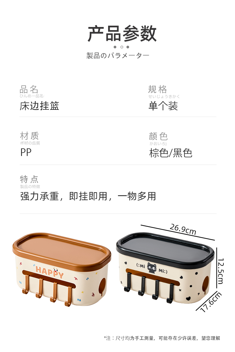商品名称: 宿舍床边挂篮 卡扣式床边纸巾盒置物架带挂钩--黑色
