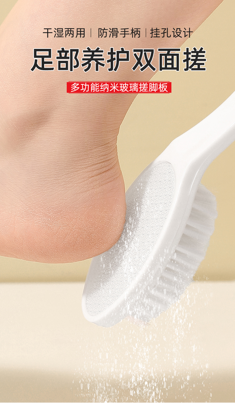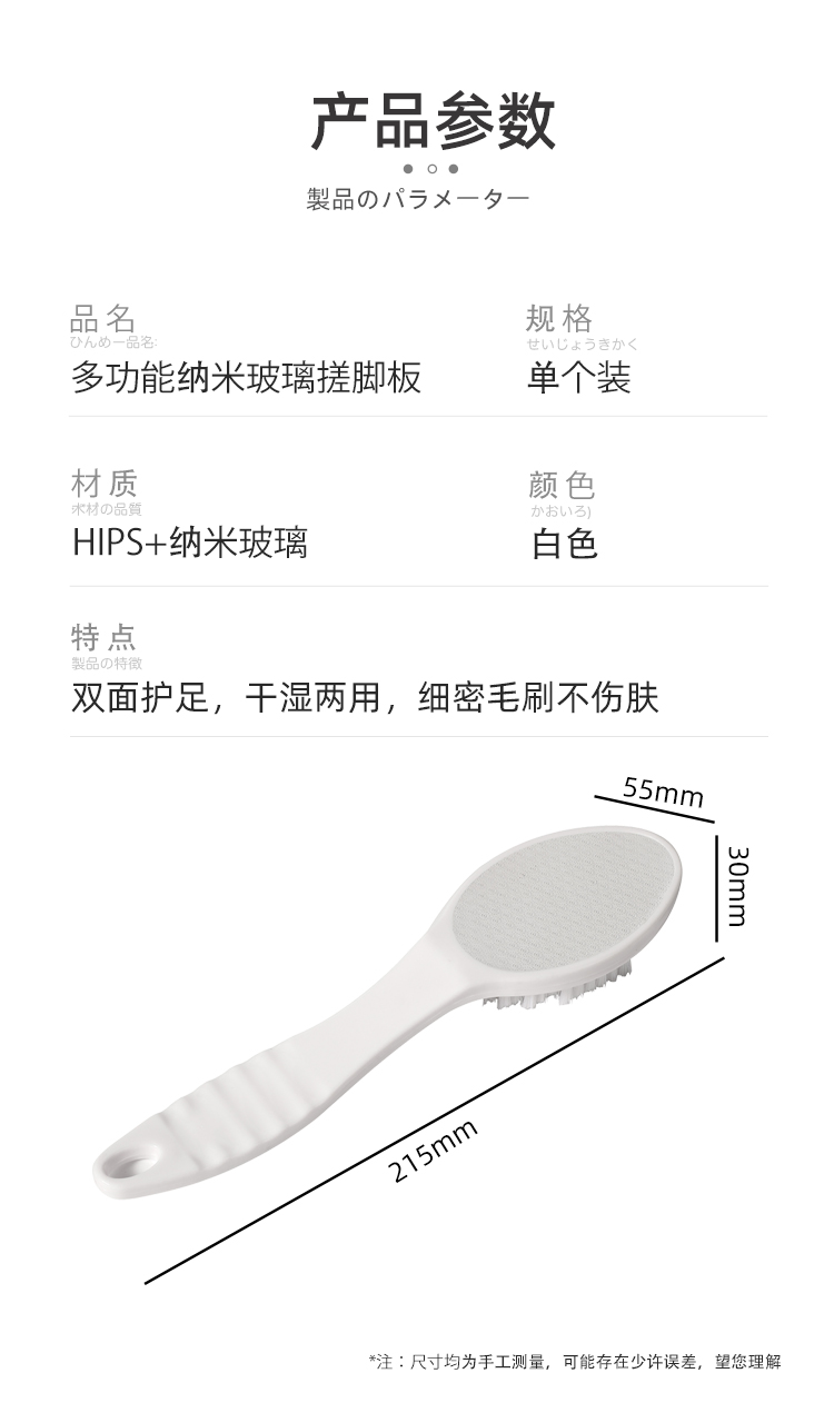 • 商品名称:多功能纳米玻璃搓脚板 足部养护双干湿两用面搓--白色