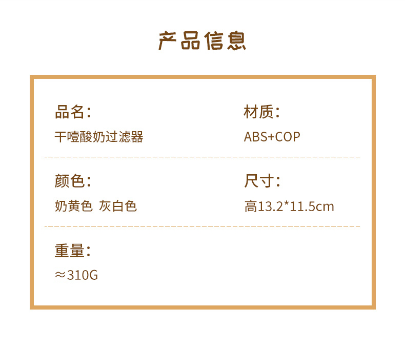 • 商品名称:家用按压弹簧过滤自制酸奶过滤器 含3片细密过滤袋--黄色