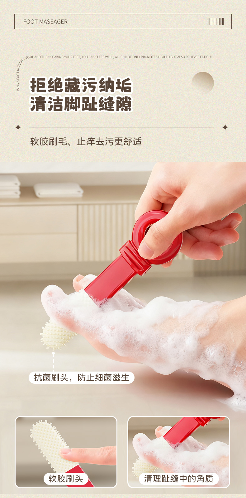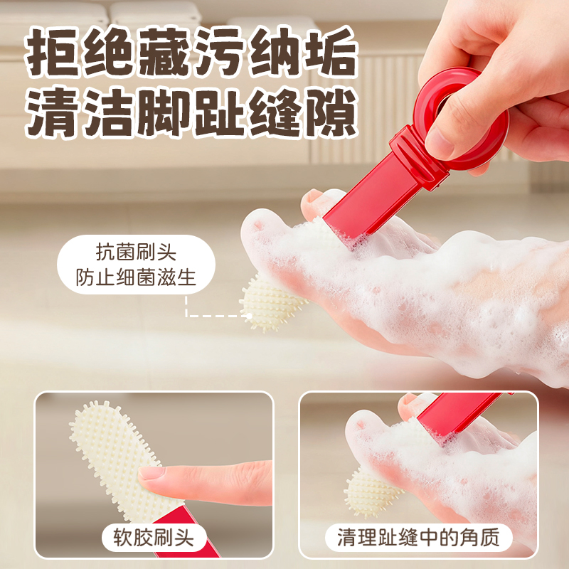 • 商品名称:三合一搓脚刷 家用洗脚刷脚趾缝清洁刷--红色
