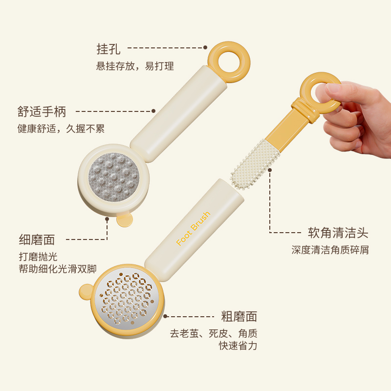 商品名称: 三合一搓脚刷 家用洗脚刷脚趾缝清洁刷--黄色