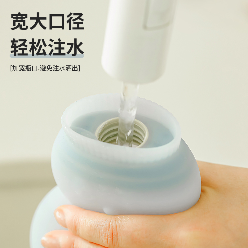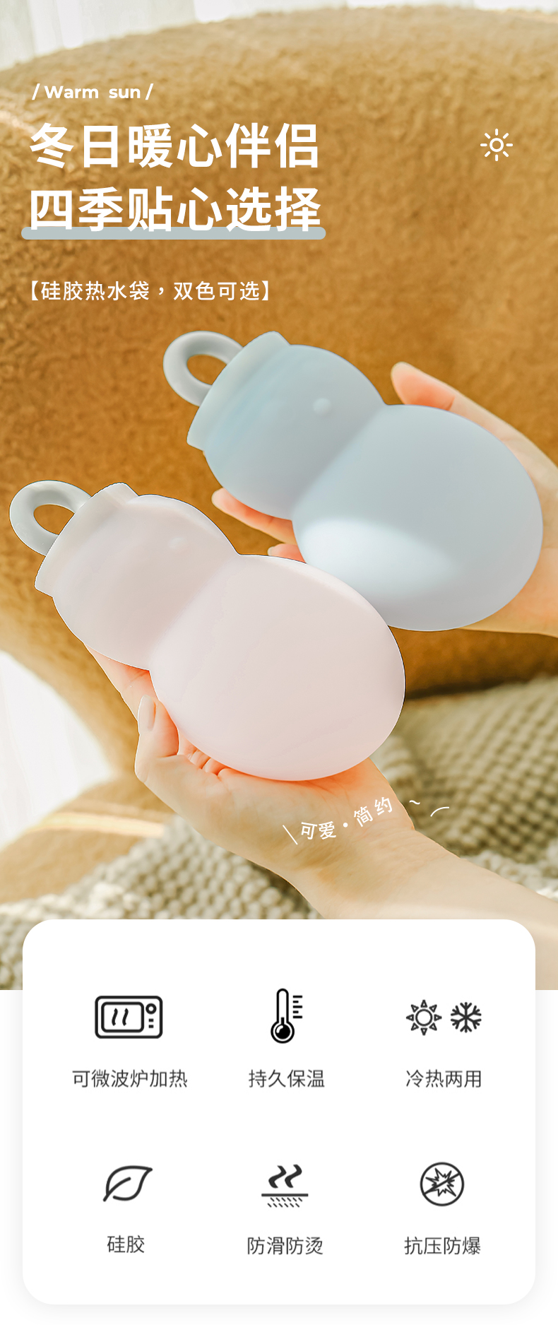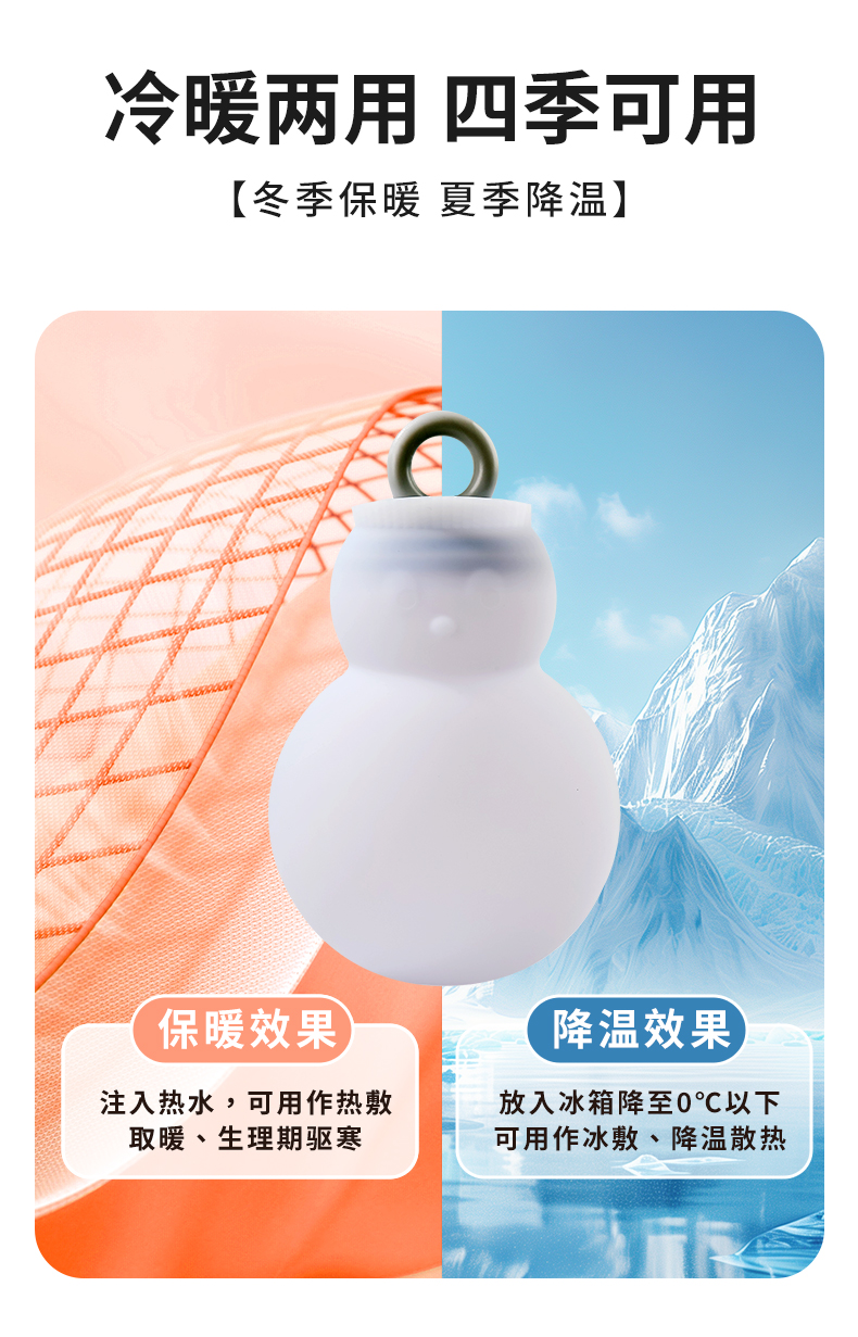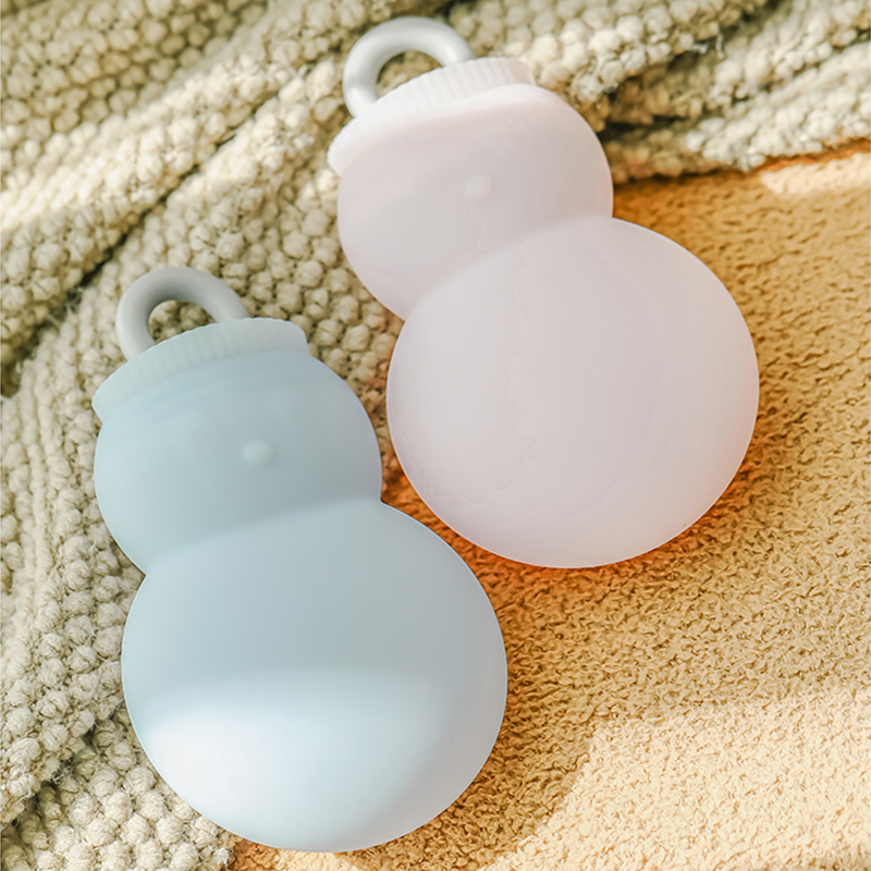• 商品名称:萌趣雪人硅胶热水袋 带针织外套冷热两用可微波加热 大号--透明蓝色
