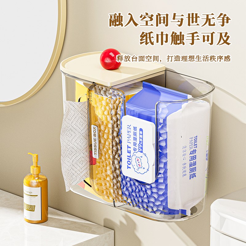干湿纸巾两用收纳盒 顶部单盖可置物湿巾收纳盒--红球奶白