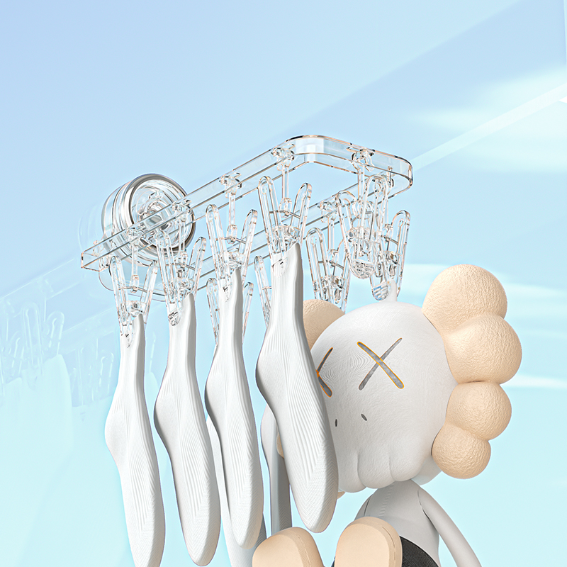 轻奢袜子晾晒架 旋钮吸盘壁挂折叠晾衣夹20夹子--透明色