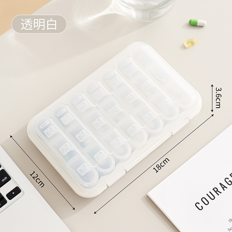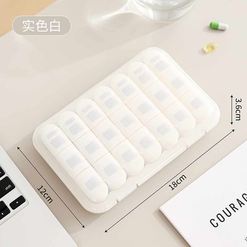 7天便携式密封药盒 加大图文21小分格大容量药盒--奶白色