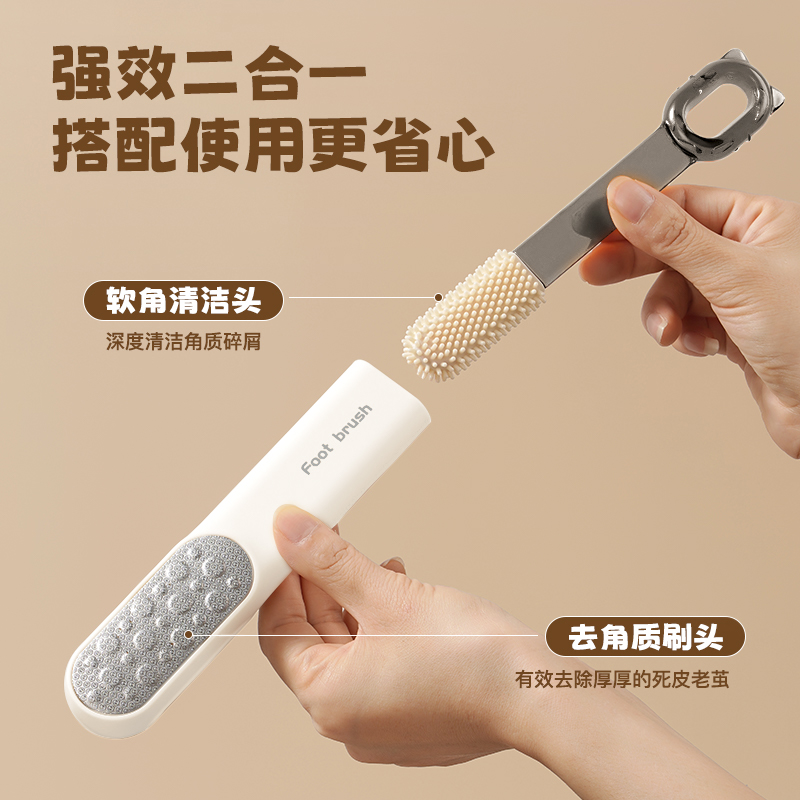 足部护理双面搓脚刷 含脚部清洁缝隙刷--白色