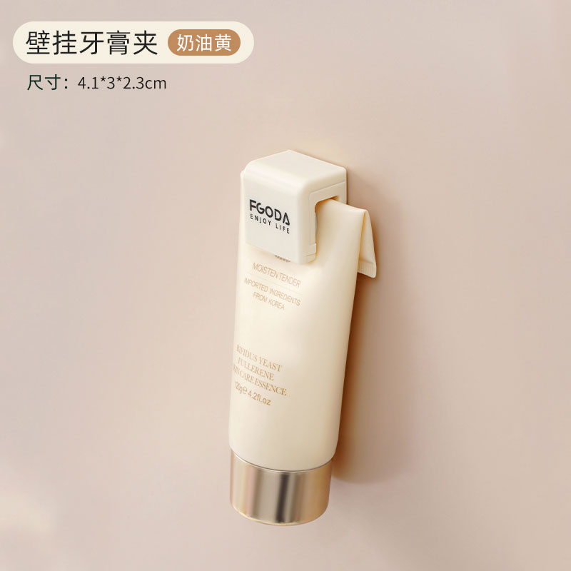 奶油黄简约壁挂牙膏收纳架 洗面奶收纳夹