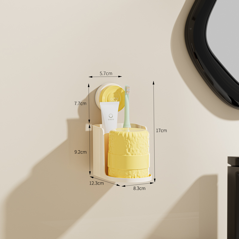 创意吸盘壁挂式家用卫浴牙刷牙膏置物架 带杯子收纳套装--黄色