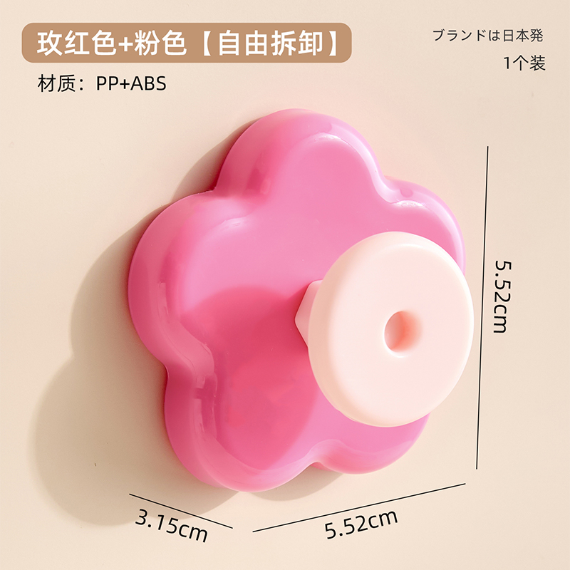 花朵形吸盘挂钩 真空吸附厨卫多用途可组合分类挂钩--玫红色